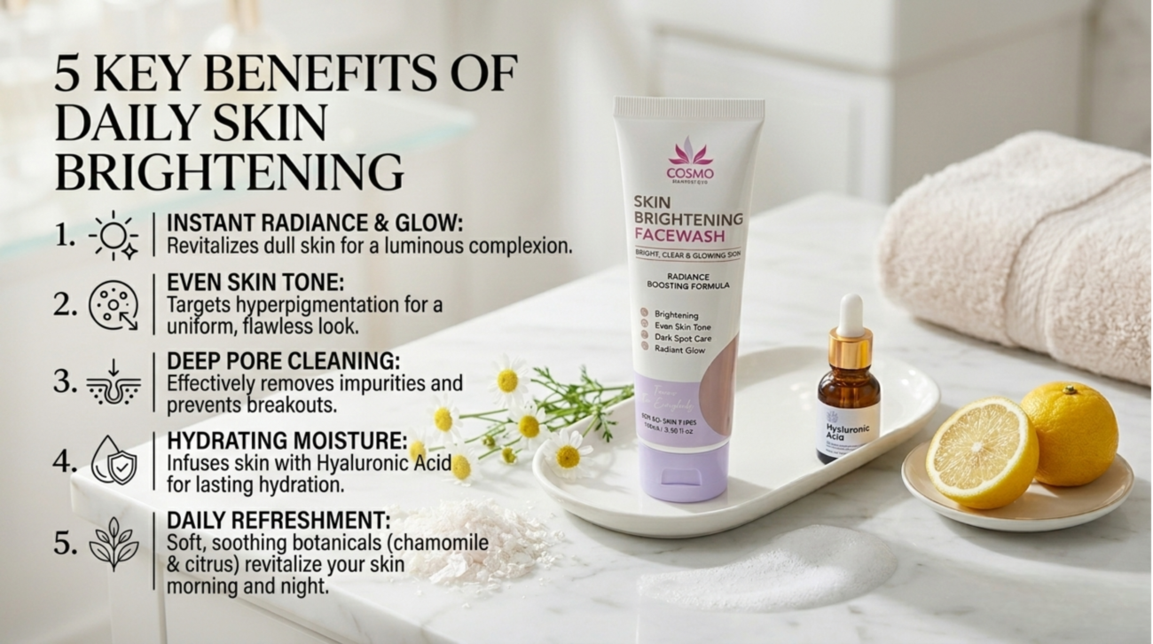 Cosomedionique Brightening Face Wash gently cleanses the skin and removes dirt, oil, and impurities. Its refreshing formula helps brighten the complexion while keeping the skin soft and hydrated. With regular use, it supports a clearer and more radiant look. Perfect for daily use to keep your skin feeling fresh, clean, and healthy. ✨